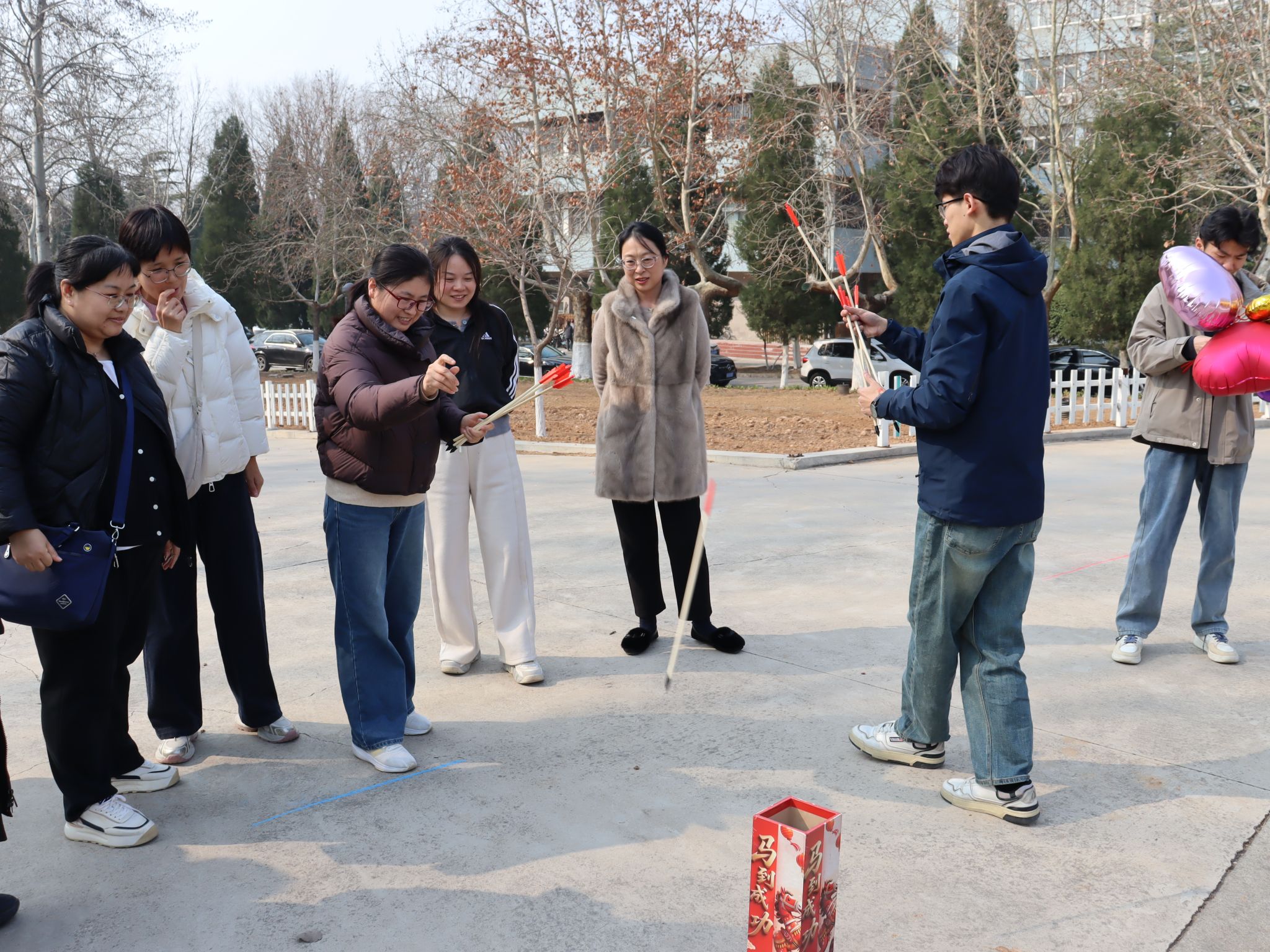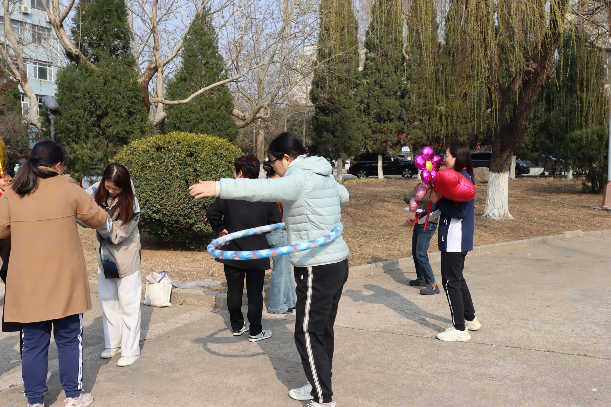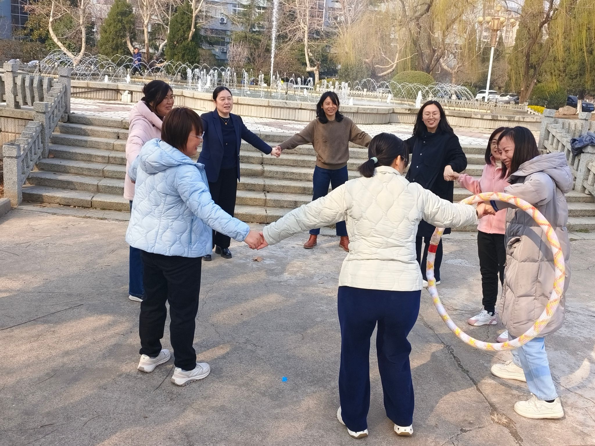 精彩纷呈的趣味闯关活动在绿泉广场四个区域同步展开。南区“呼啦圈接力”注重团队协作,女教师们默契配合,巧妙传递;东区“一分钟跳绳”现场绳影翩跹,展现出活力与耐力;西区“趣味投壶”雅致有趣,引得大家凝神静气,精准投掷;北区“一分钟呼啦圈”则彩圈流转,姿态灵动。活动现场气氛热烈,欢声笑语不断,大家在轻松愉快的比赛中交流了情感,锻炼了身心。