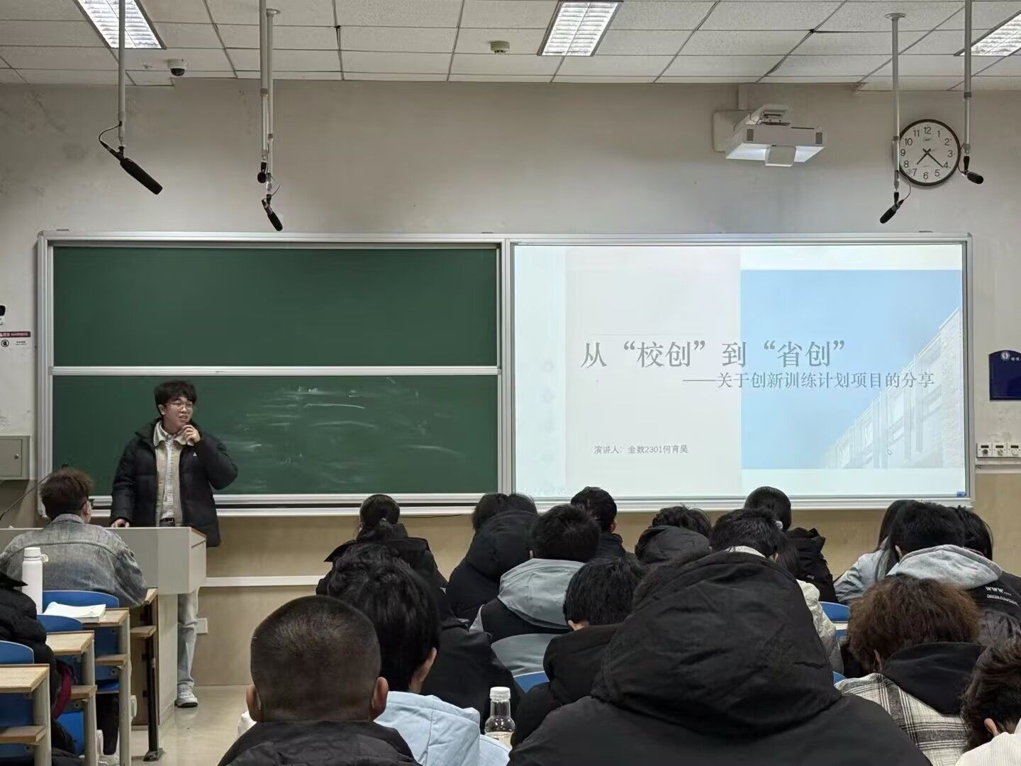 曹艺璇结合自身参赛经历,系统梳理比赛信息获取、团队组建、选题策略及材料准备等关键环节,重点解析商业计划书撰写与路演答辩技巧,助力学生突破“从0到1”的参赛瓶颈。何育昊则以项目培育为主线,强调校级项目作为基础平台的重要性,并从格式规范到内容逻辑全面指导项目书撰写,明晰“校创—省创”的进阶路径。刘瑞敏从创新维度切入,深入剖析选题的可行性与前瞻性,强调项目书需兼具学术深度与应用价值,推动数学理论与现实需求深度融合。